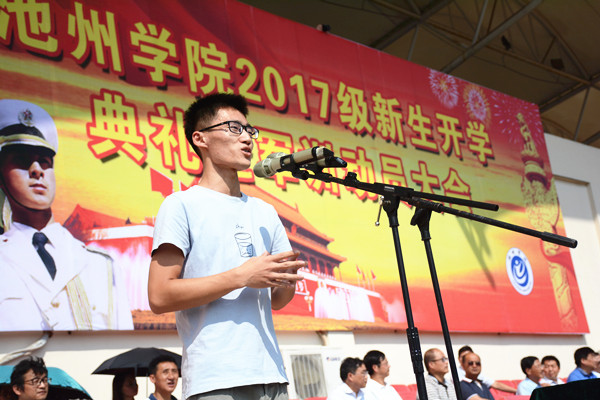 9月13日上午碧空蓝天,秋高气爽,池州学院2017级新生开学典礼暨军训动员大会在校运动场如期举行。来自11个省份的4100余名新生身着军训服在校运动场整齐列队集合。