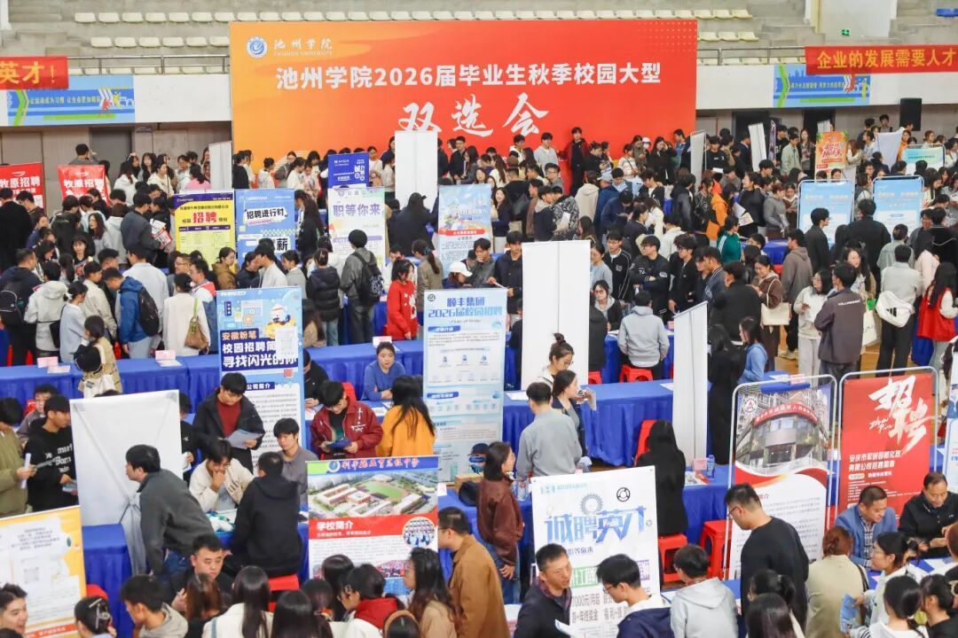 为学习宣传贯彻党的二十届四中全会精神,深入落实习近平总书记关于高校毕业生就业工作的重要指示精神,充分发挥校园招聘主渠道作用,11月1日,学校联合池州市委人才工作局、池州市人力资源和社会保障局在池州学院体育馆举行2026届毕业生秋季校园大型双选会。校党委副书记盛国星、池州市委人才工作局局长林贤中、池州市就业创业服务中心主任纪平前往现场指导。