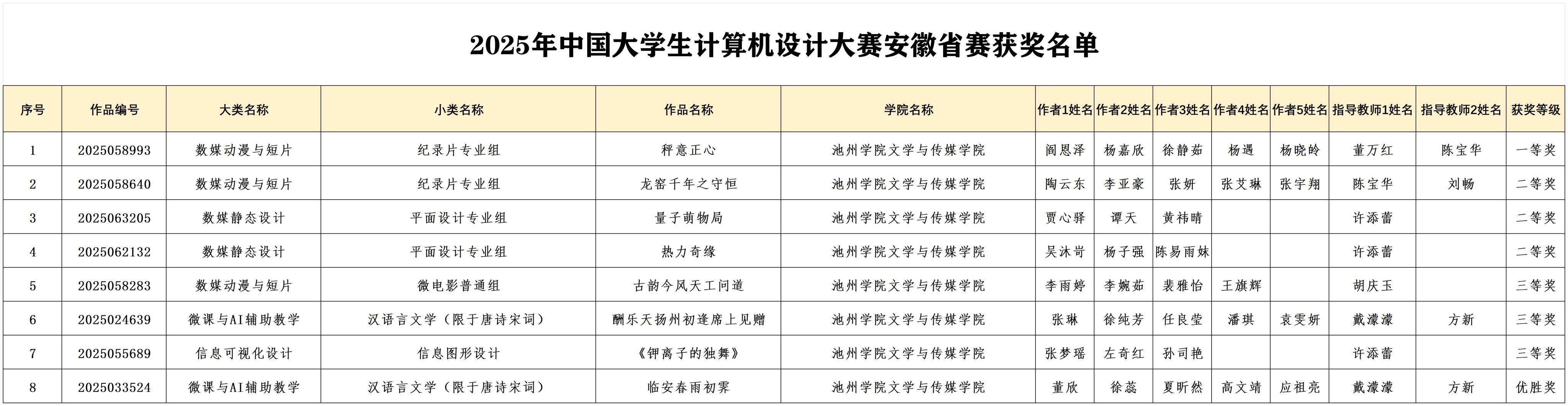 12月11日,2025年中国大学生计算机设计大赛安徽省级赛获奖名单正式公布。我校在本次比赛中表现优异,共荣获8项奖项,其中一等奖1项、二等奖3项、三等奖3项,优秀奖1项。