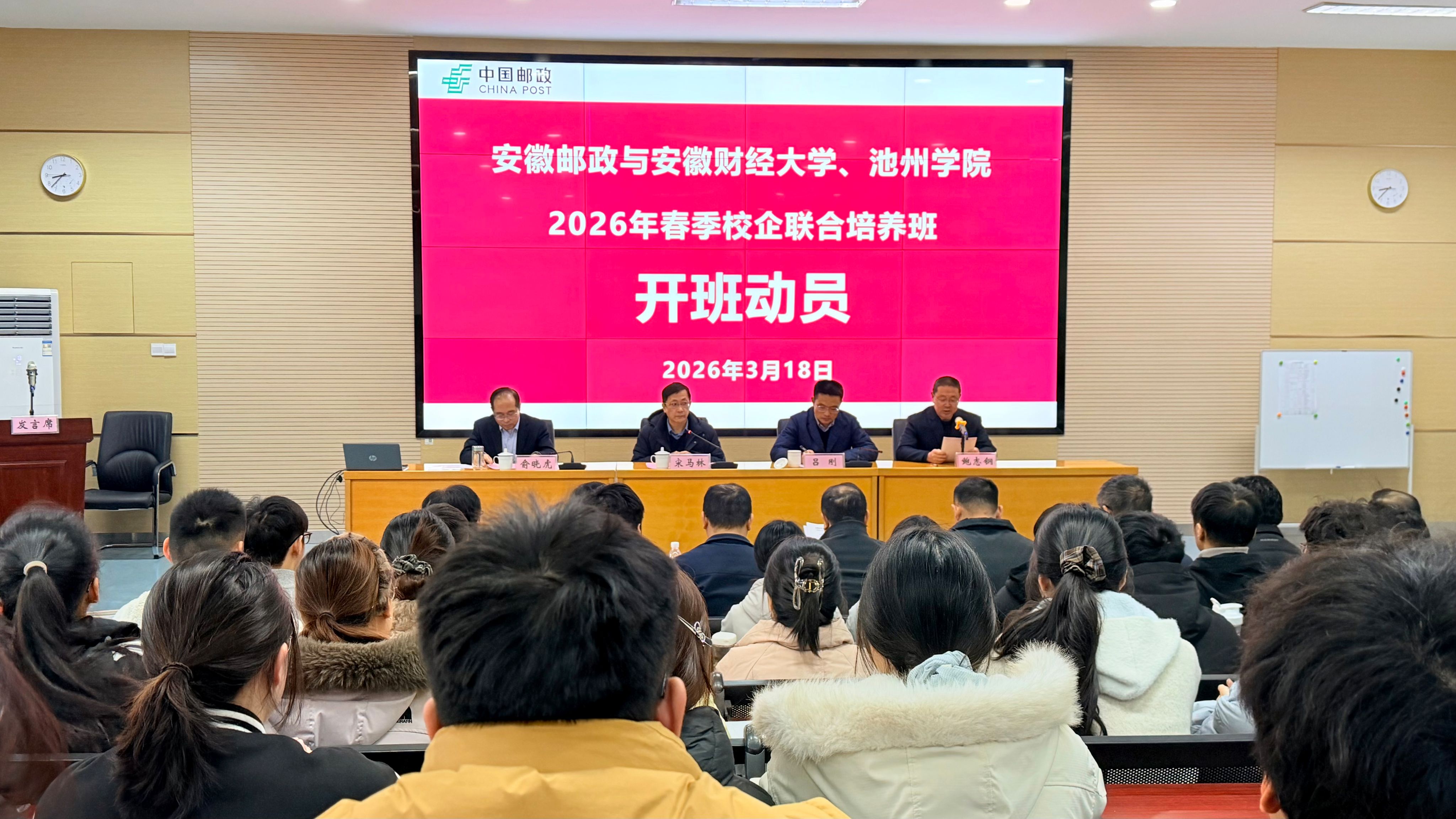 此次开班仪式的成功举行,标志着三方合作迈入实质性阶段,三方协同赋能,打造“入学即入职、毕业即就业”金融服务与管理(邮政方向)微专业人才培养新高地。未来,我校将以此次合作为新起点,持续深化与安徽邮政及安徽财经大学的全方位、深层次协作,不断拓展合作领域、健全协同育人机制,全力打造产教融合、供需对接、就业直通的人才培养样板,为安徽“三地一区”建设及池州经济社会高质量发展输送更多高素质应用型人才。