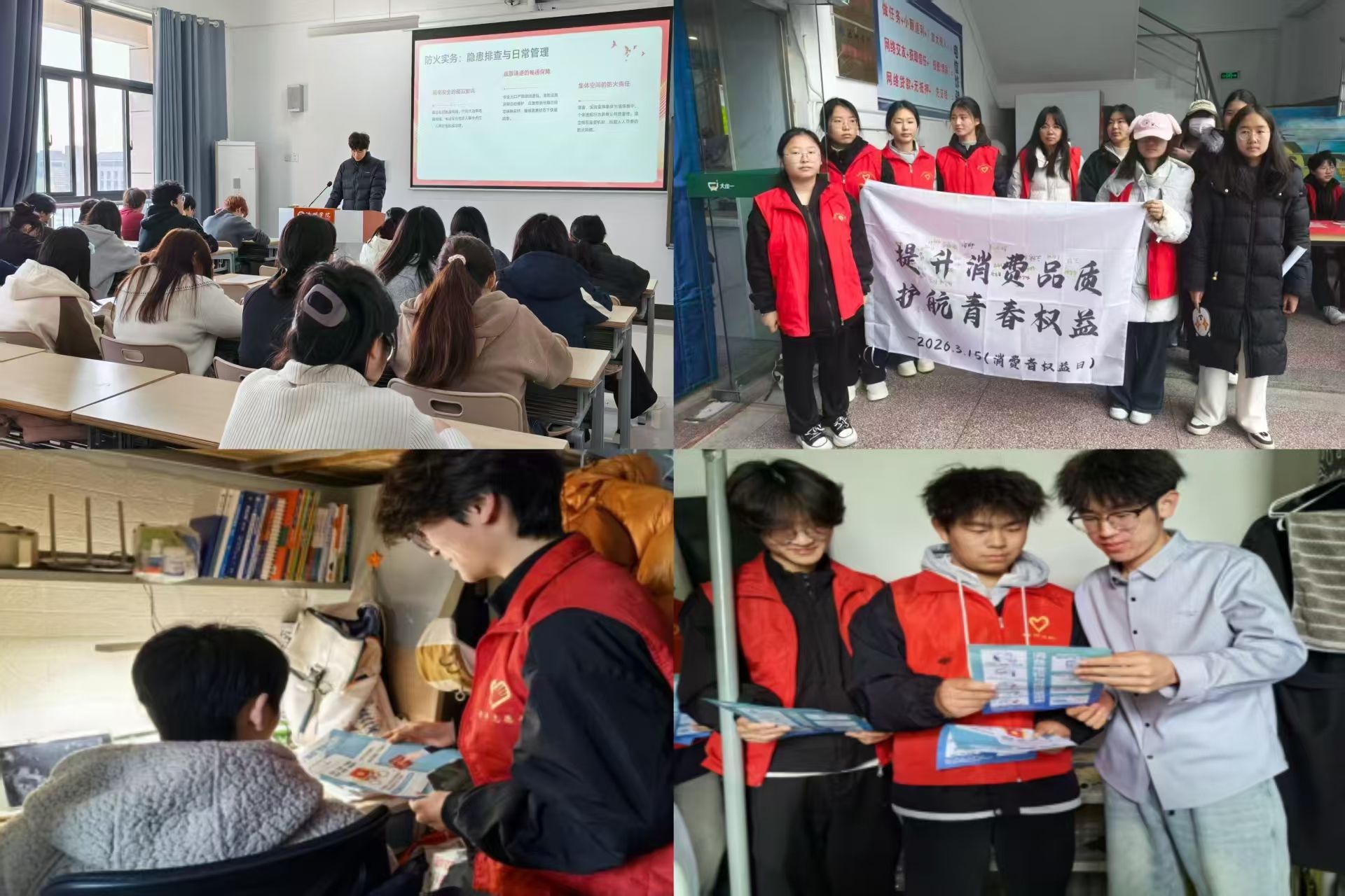 普法护安:筑牢校园与社会安全防线。艺术与教育学院志愿者们通过“青春奉献·普法宣传有我”主题班会和校园安全文化宣传活动,围绕危机处理、消防安全、网络防诈等内容,结合真实案例讲解,推动法治安全知识入脑入心。材料与环境工程学院紧扣“3·15”消费者权益日,组织志愿者在宿舍区开展“反诈维权齐参与,安全校园共守护”活动。志愿者们分组深入宿舍,拆解网购退款、虚假兼职等诈骗套路,讲解维权流程,实现全院学生全覆盖宣传。旅游与历史文化学院组织志愿者在一二食堂门口开展普法宣传,通过发放手册、现场答疑、有奖问答等形式普及《中华人民共和国消费者权益保护法》,引导学生理性消费、依法维权。