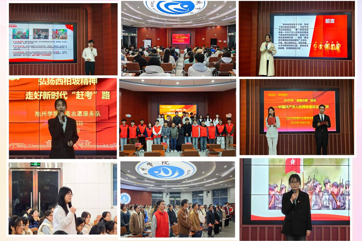 活动现场,来自池州学院“红星”志愿服务队、“艺颗红星 经天纬地”志愿服务队、“启明星”志愿服务队的志愿者们围绕井冈山精神、遵义会议精神、延安精神、西柏坡精神、“两弹一星”精神等伟大精神,开展了一系列主题宣讲。志愿者将“大道理”寓于“小故事”,让珍贵的影像资料“开口说话”,带领观众回溯峥嵘岁月,在情感共鸣中感悟磅礴的精神力量。互动环节气氛热烈,同学们通过知识竞答与学习心得交流,进一步深化对红色精神的理解,让红色理论从历史中“走”出来、在校园里“活”起来,点燃青年学子内化于心、外化于行的信仰之火。