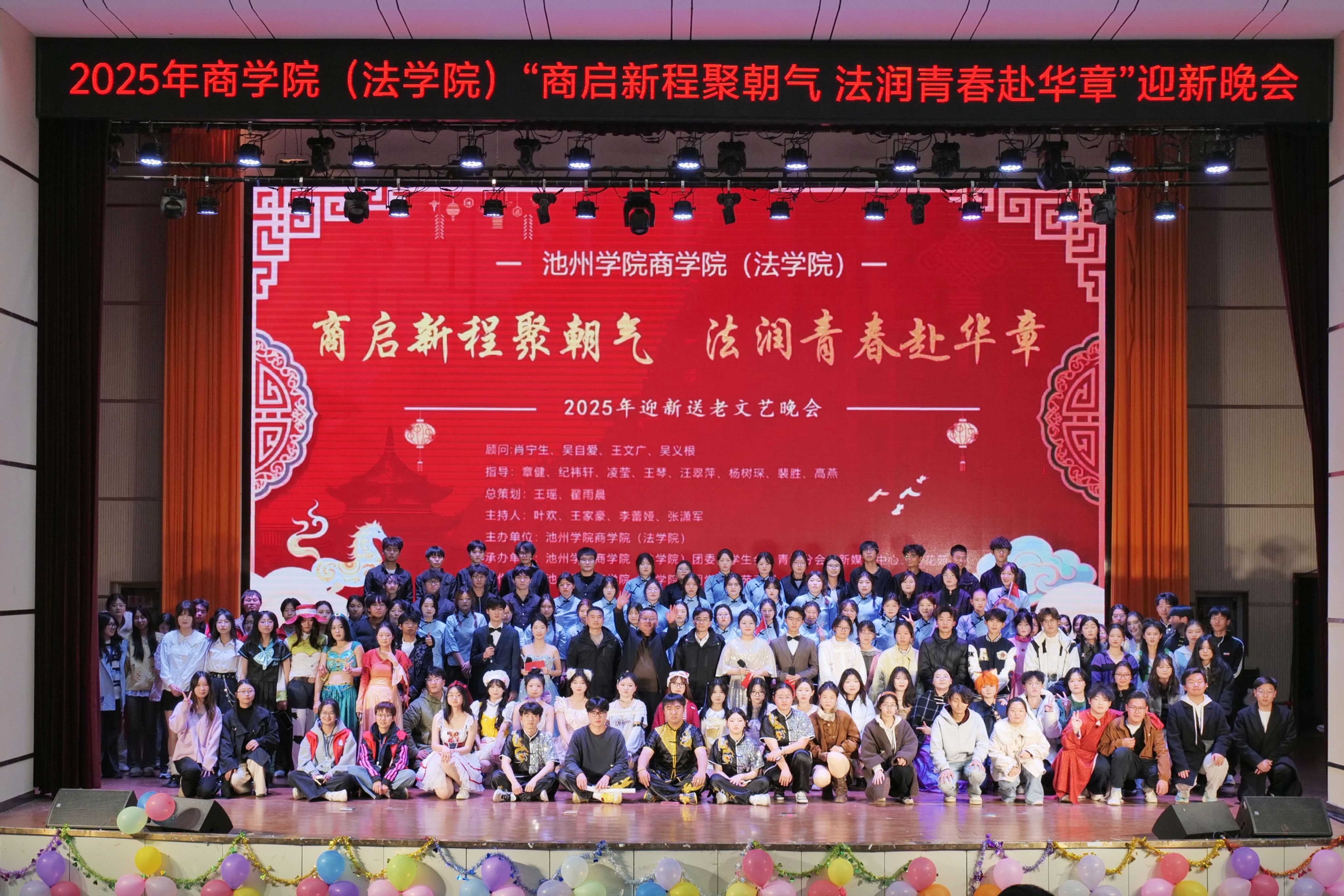 12月19日,商学院(法学院)在博古礼堂成功举办2025年“商启新程聚朝气,法润青春赴华章”迎新文艺晚会暨表彰大会。商学院(法学院)领导班子及师生代表400余人观看了晚会。