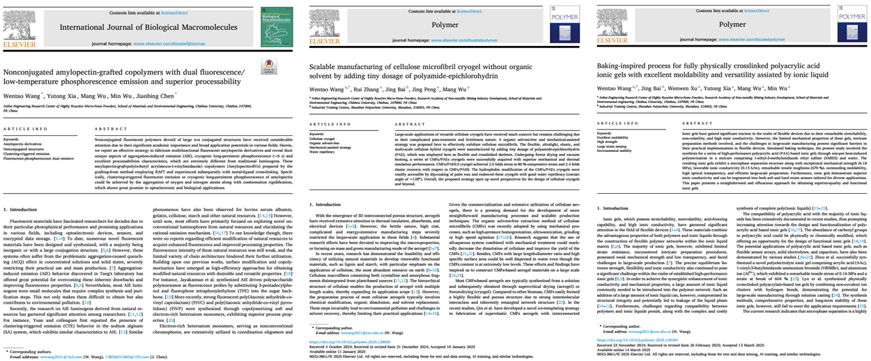 王文韬以池州学院第一单位第一作者在中科院一区International Journal of Biological Macromolecules和中科院二区Polymer上连续发表三篇高水平科研论文