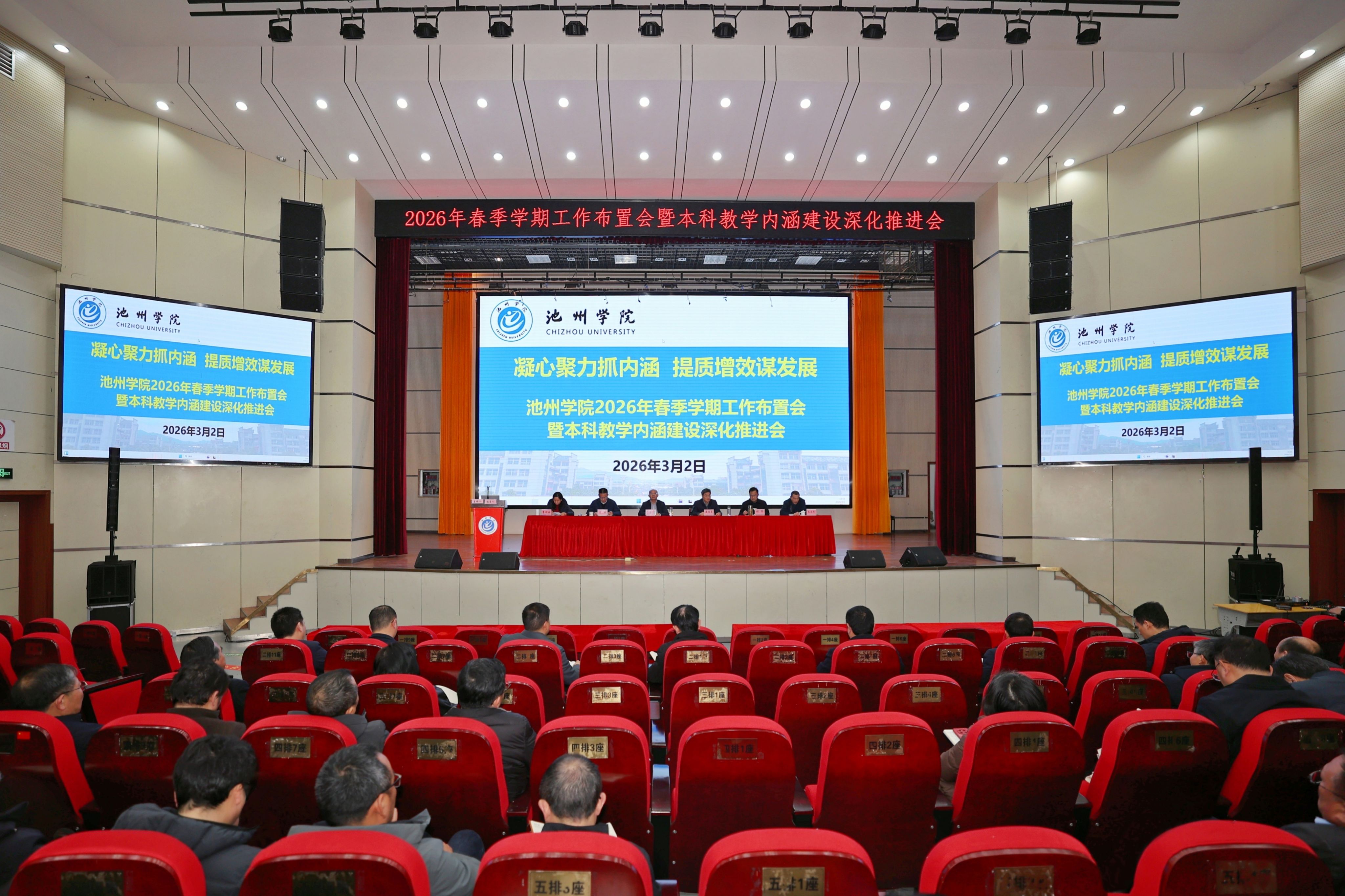 3月2日,池州学院召开2026年春季学期工作布置会暨本科教学内涵建设深化推进会。大会以“凝心聚力抓内涵,提质增效谋发展”为主题,集思广益、群策群力,旨在认真落实立德树人根本任务,持续深化教育教学改革,夯实本科教学基础,凝练办学特色,切实提高人才培养质量,奋力开创学校高质量发展新局面。校领导王先柱、盛国星、吕刚、张赛、李明玲、朱为民等出席会议。